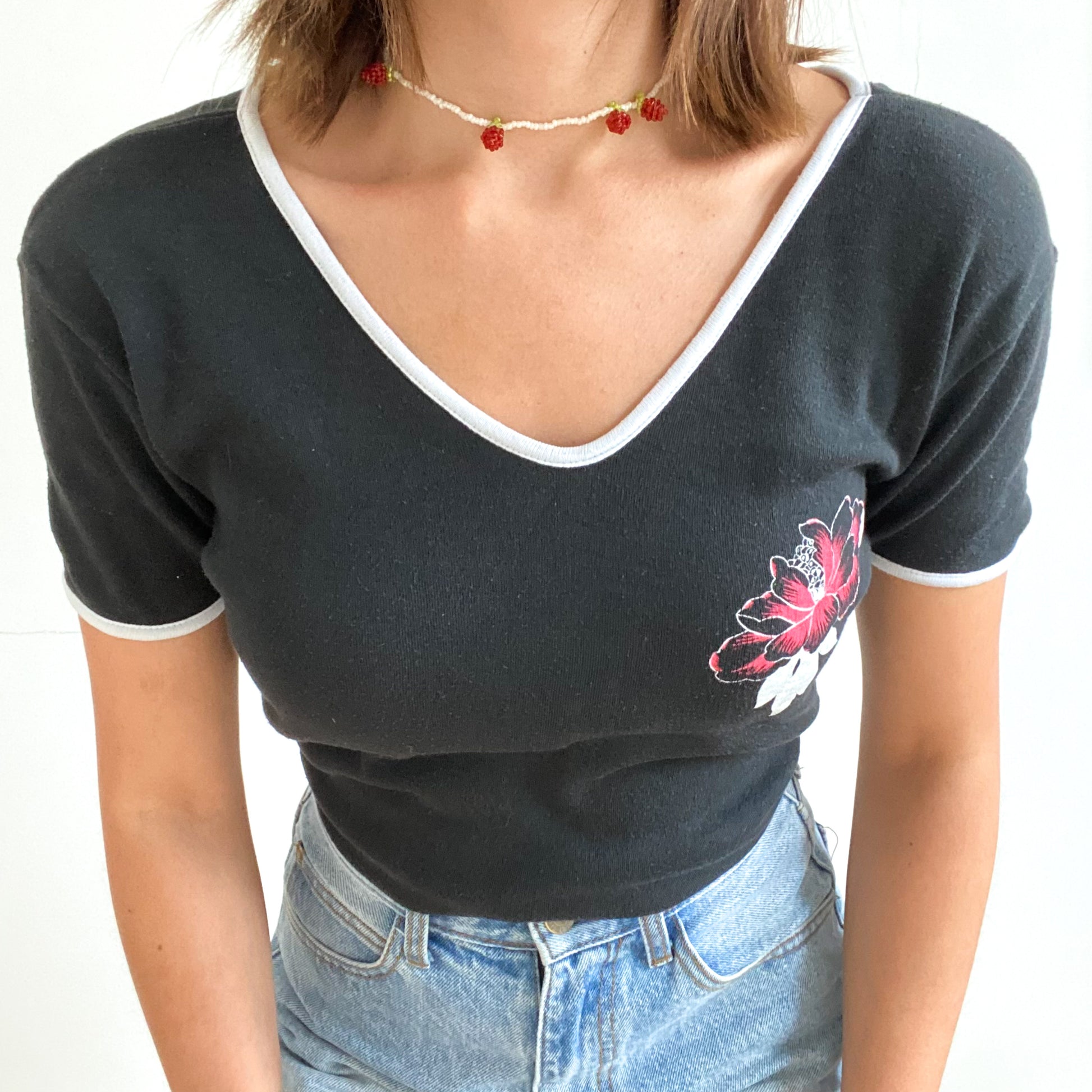 Black and White Flower Top