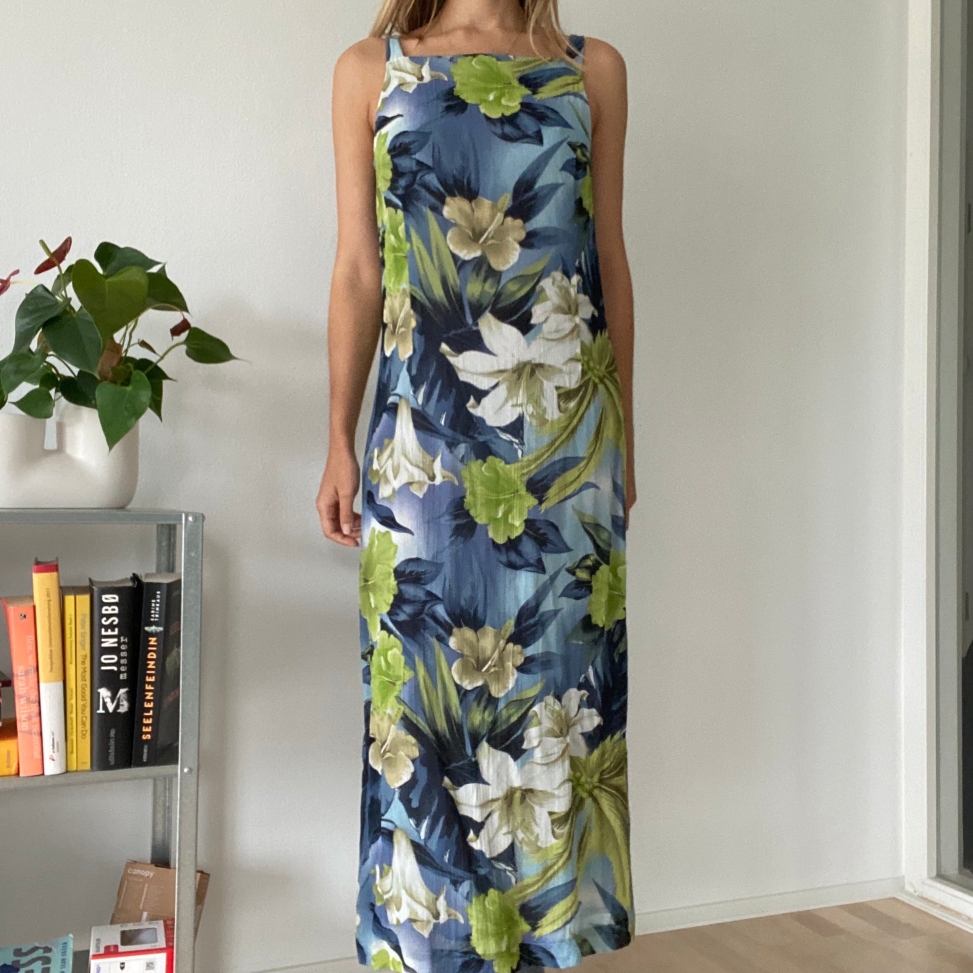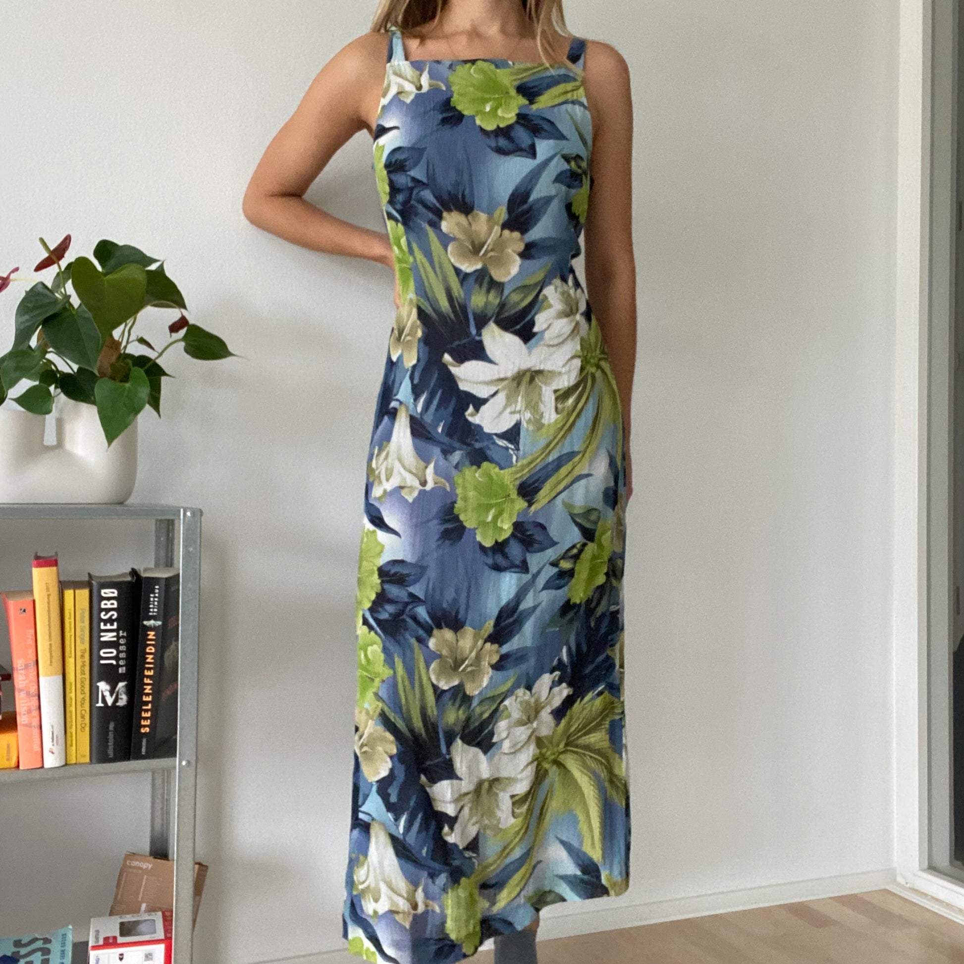 Measurements (slightly elastic) Bust: 45 cm Waist: 42 cm Hip: 49.5 cm Flare: 63 cm Strap to hem: 134 cm