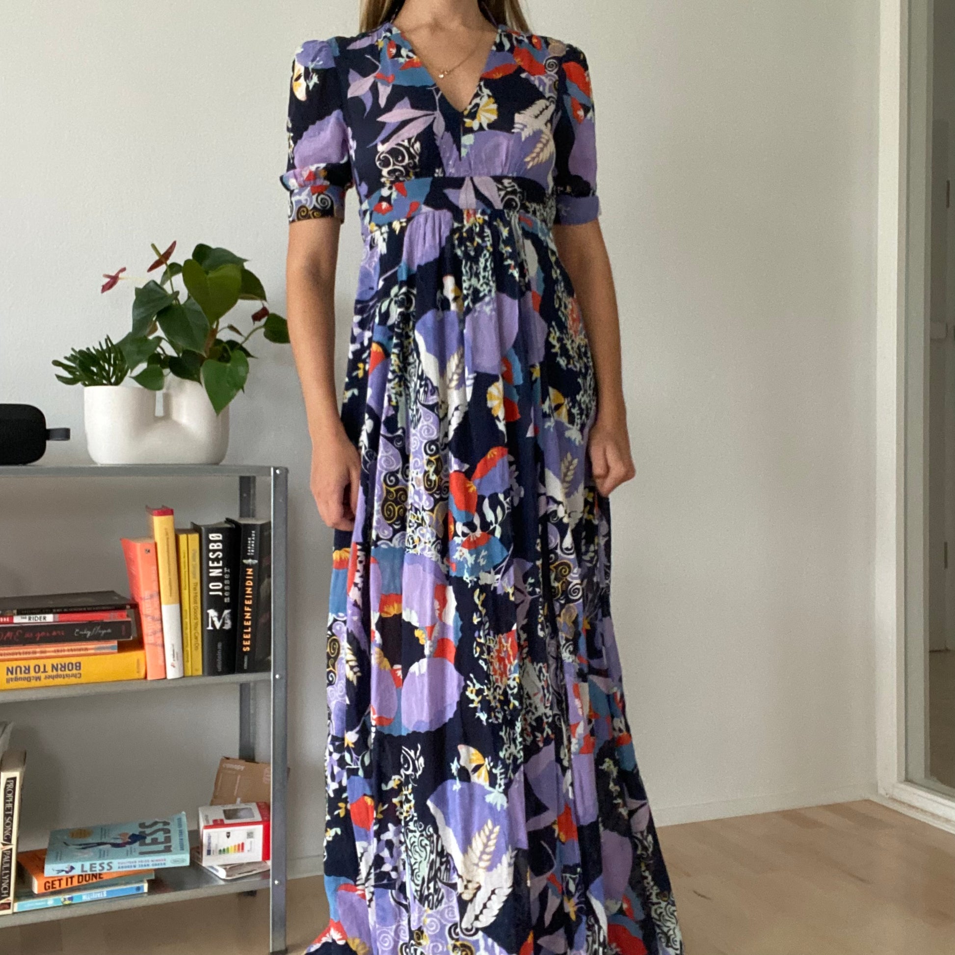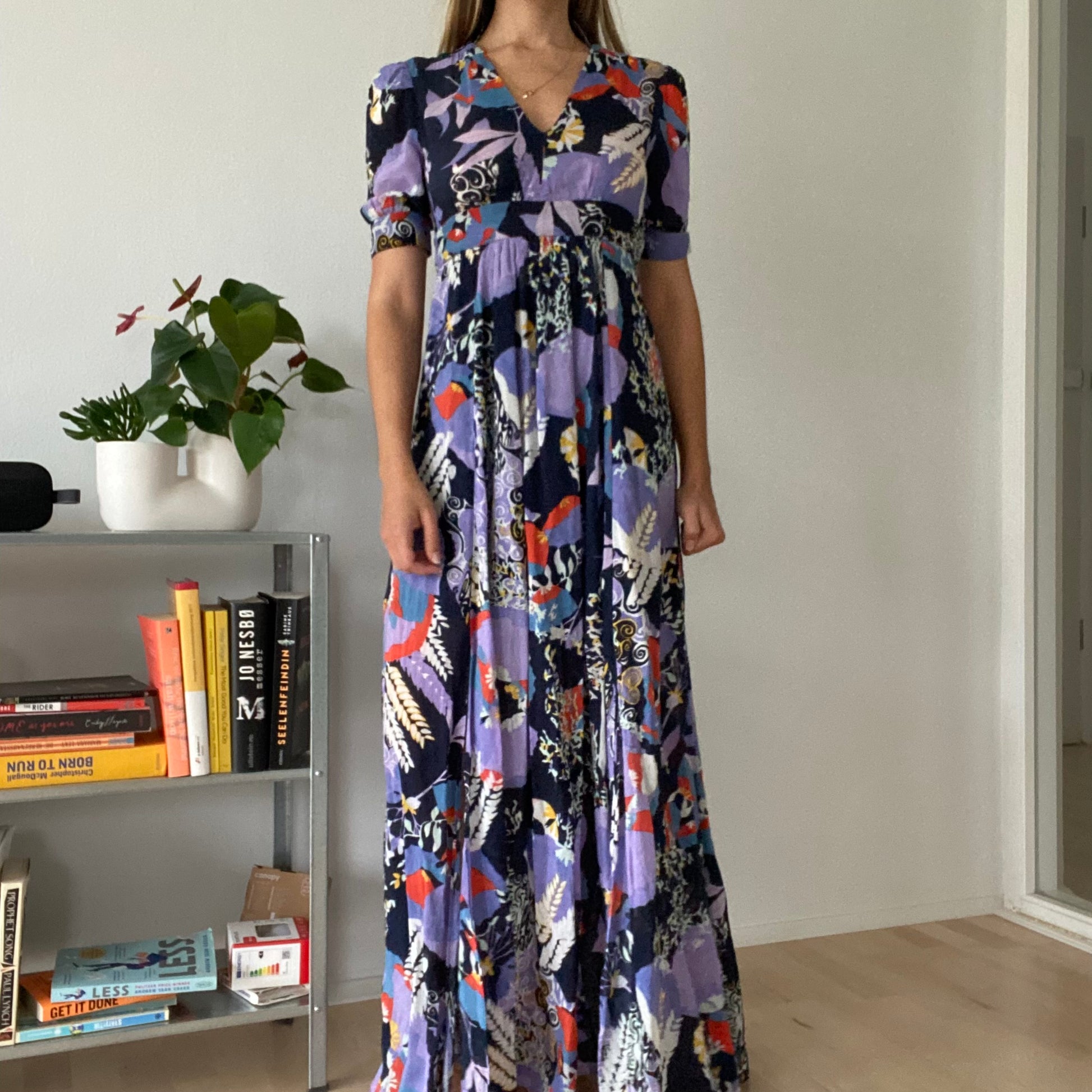 Measurements (slightly elastic) Bust: 41 cm Waist: 36 cm Hip: 58 cm Flare: 141 cm Strap to hem: 107 cm