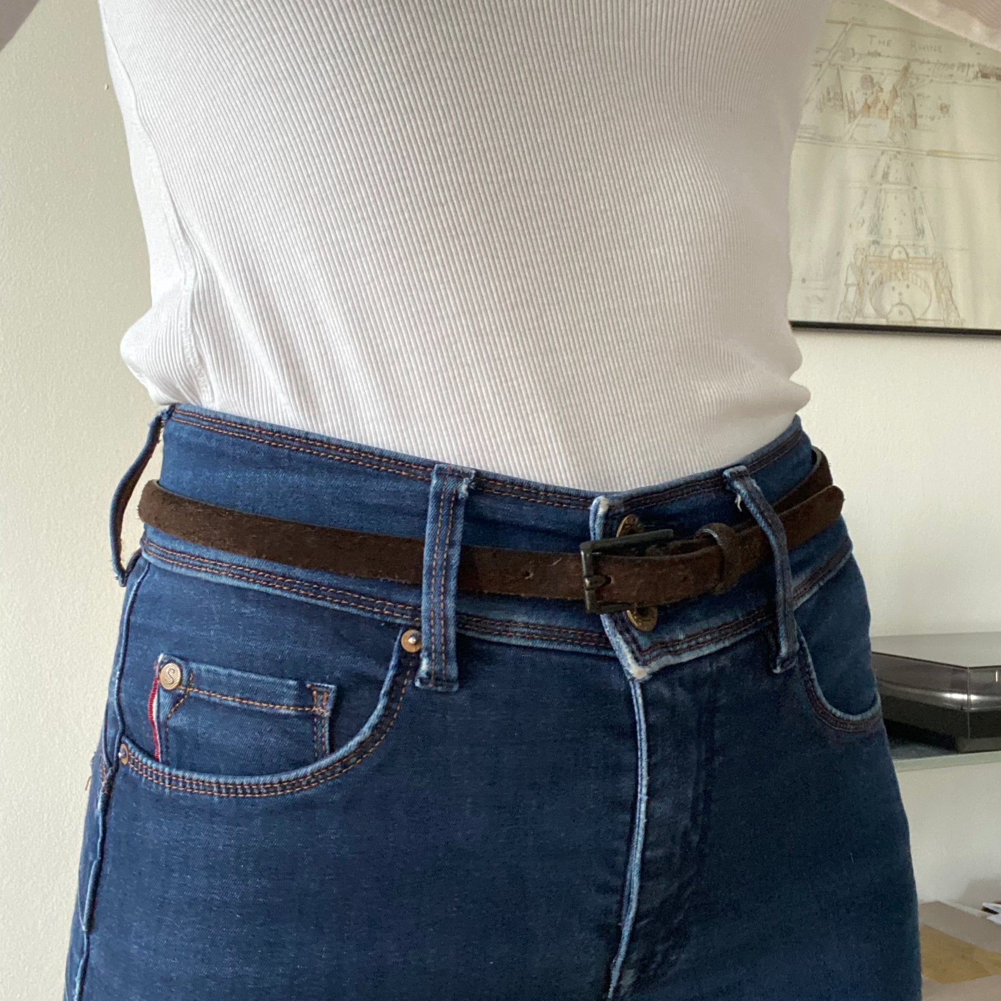 Thin suede leather brown belt 00’s made in Italy